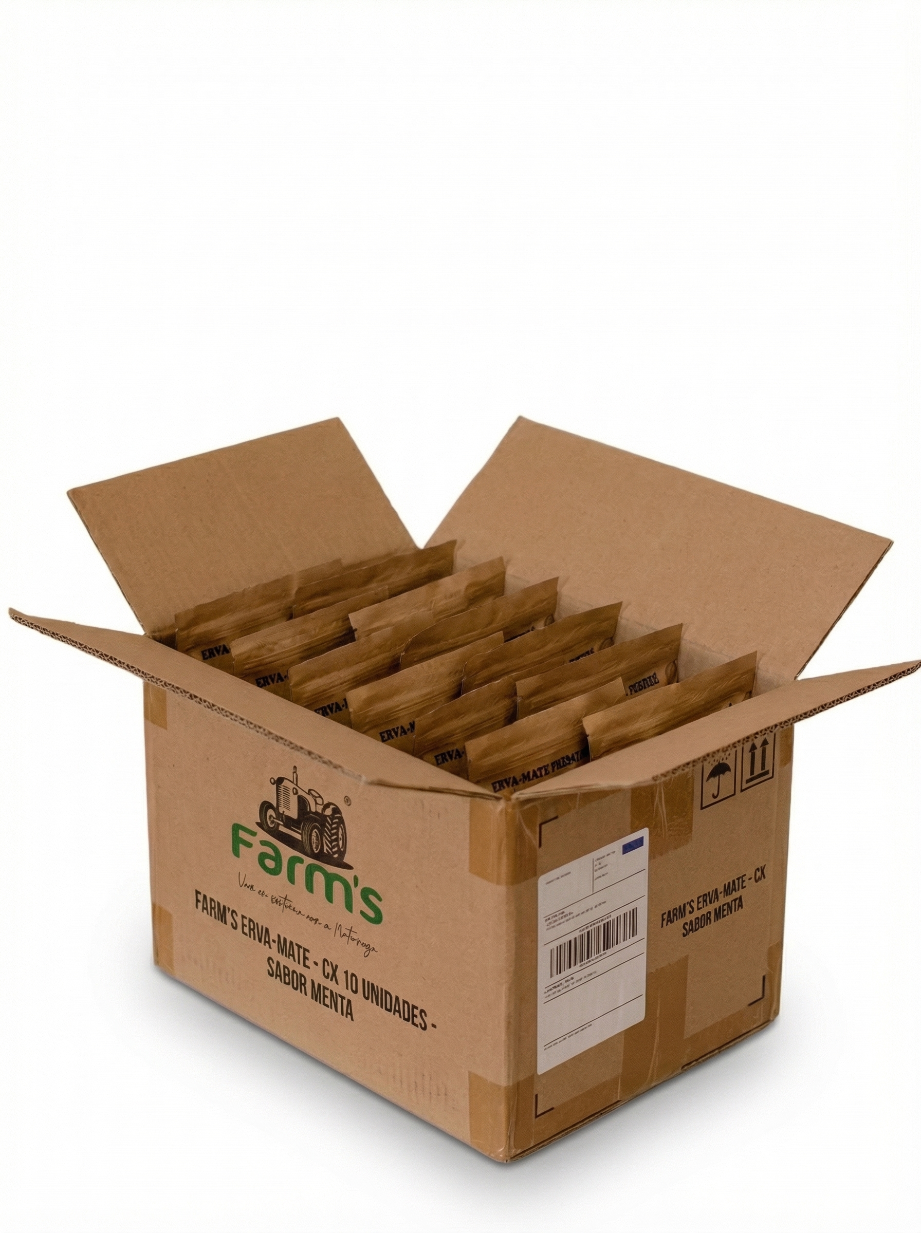Caixa com 10 pacotes de erva mate Farms
